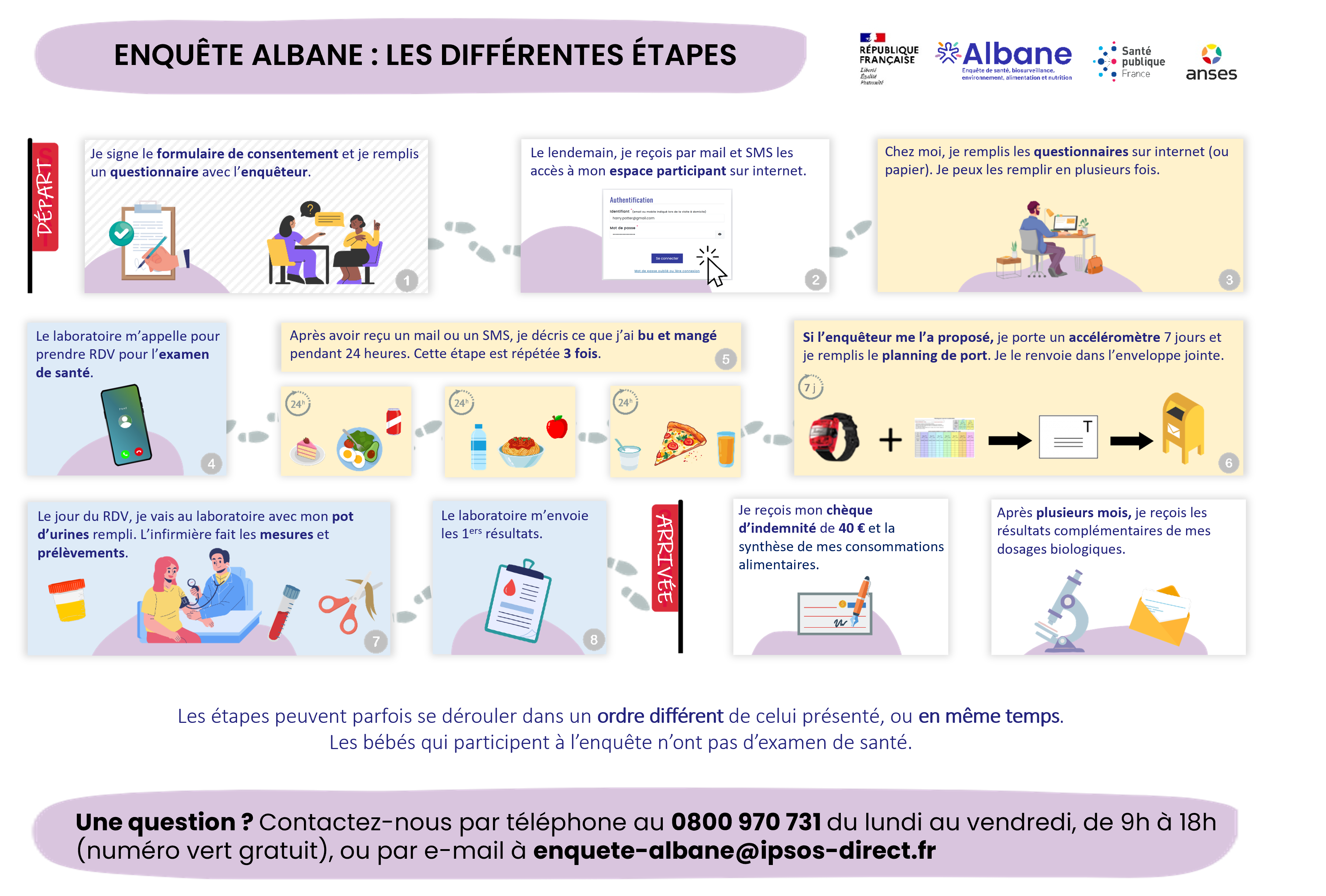 Enfin, les participants doivent se rendre dans un laboratoire de biologie médicale partenaire pour un examen de santé. Une infirmière y réalisera différentes mesures (taille, poids, force musculaire et, pour les participants de 12 ans et plus, pression artérielle). Elle les questionnera sur leurs maladies chroniques éventuelles, la consommation de tabac et l’exposition à des substances chimiques spécifiques. Des analyses d’urine et un prélèvement d’une petite mèche de cheveux seront également réalisés, ainsi que des analyses de sang pour les participants de 6 ans et plus.